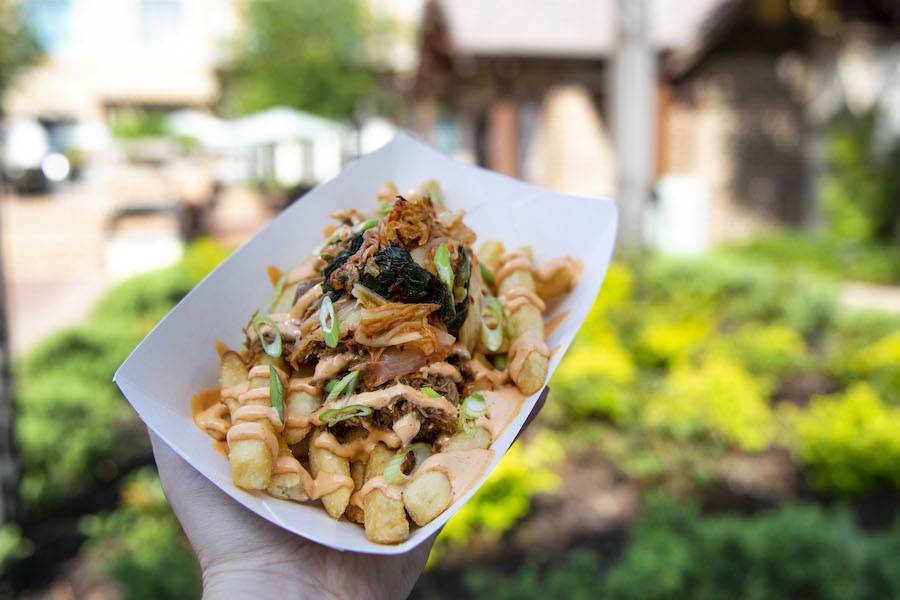 - Korean BBQ Fries, The Daily Poutine – Korean-style bulgogi pulled pork and kimchi topped with Sriracha aïoli piled high on French fries.