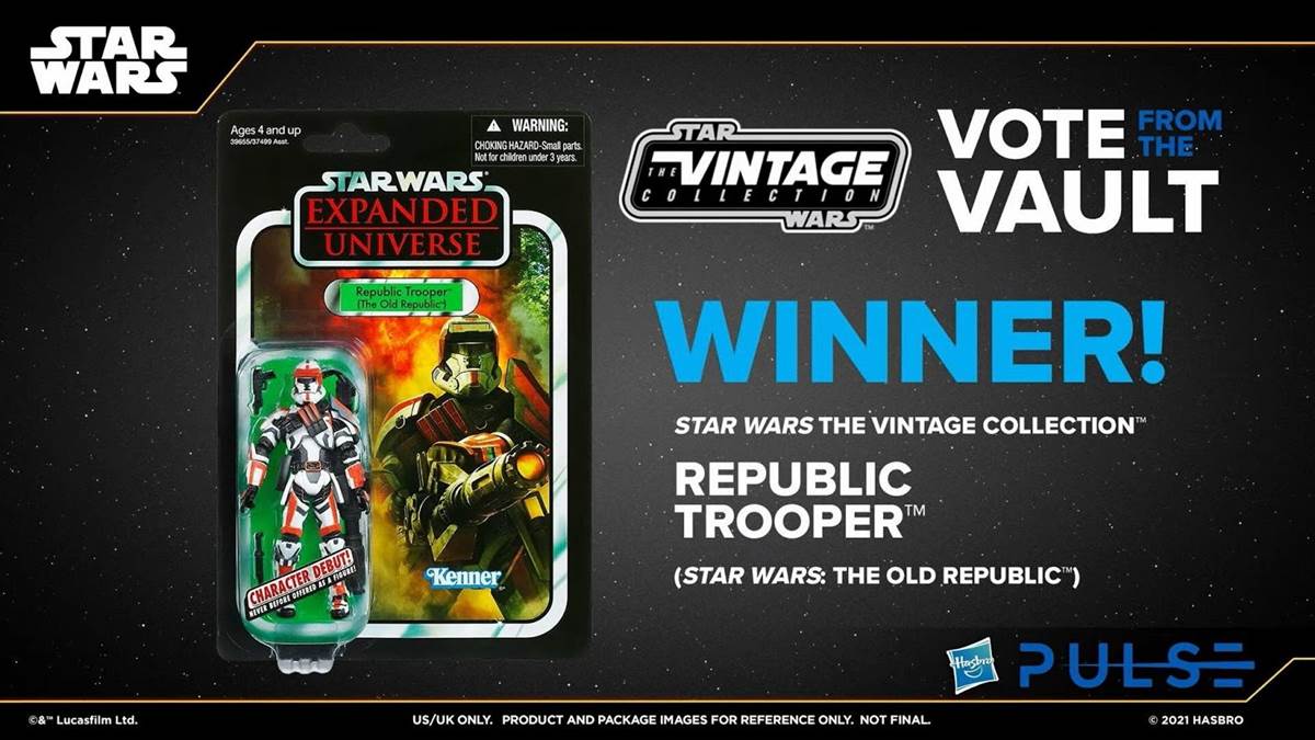 Near the end of the livestream, Hasbro Pulse revealed the winner of the Star Wars The Vintage Collection Fans’ Vote from the Vault: the Republic Trooper from the Star Wars: The Old Republic video game.