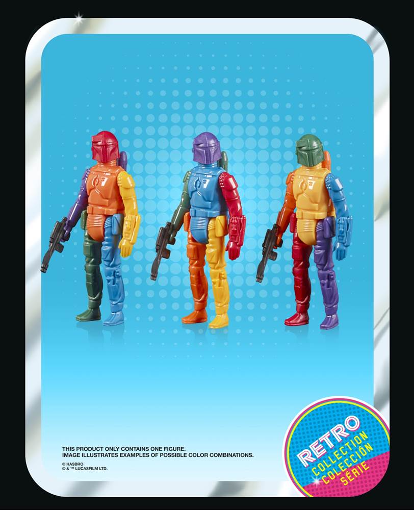 STAR WARS: RETRO COLLECTION 3.75-INCH BOBA FETT PROTOTYPE EDITION (Summer) - “Inspired by the original 1970s Kenner STAR WARS action figures, this figure features premium design and five points of articulation. With his blaster accessory in hand, this poseable figure is sure to add a bright pop of color to any fan’s STAR WARS collection. Beautifully rendered retro packaging captures a colorful pop art style and includes throwback STAR WARS branding and a Kenner Toys logo. Includes figure and accessory.”