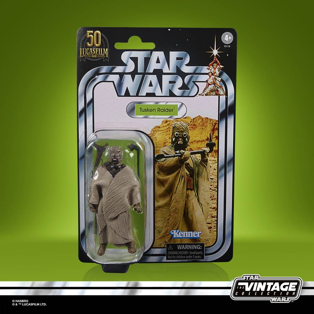 STAR WARS: THE VINTAGE COLLECTION LUCASFILM FIRST 50 YEARS 3.75-INCH TUSKEN RAIDER (Summer) - “Commemorate the first 50 years of LUCASFILM with this STAR WARS: THE VINTAGE COLLECTION LUCASFILM FIRST 50 YEARS 3.75-INCH TUSKEN RAIDER Figure, inspired by the original STAR WARS trilogy. Highly poseable with realistic detail, this figure features original Kenner branding and can be displayed in action figure and vehicle collections. Includes figure and 2 accessories.”