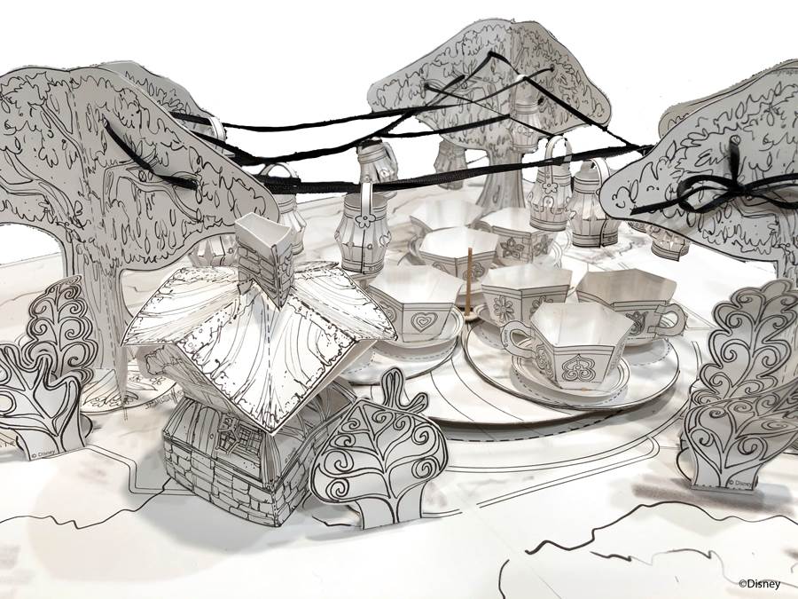 - The teacups in the set are complete with a turntable base that actually spins! The printouts even include more surprises, like the neighboring cottage and overhead lanterns that are iconic to the Disneyland version of the attraction that has been replicated at numerous Disney Parks around the world. The set also includes Royal Fan Faire attire that can be placed on Mickey and Minnie Disney Paper Parks Figures that were available for download previously. The attire is a perfect fit for the pair to enjoy the Paper Fantasyland attractions.
