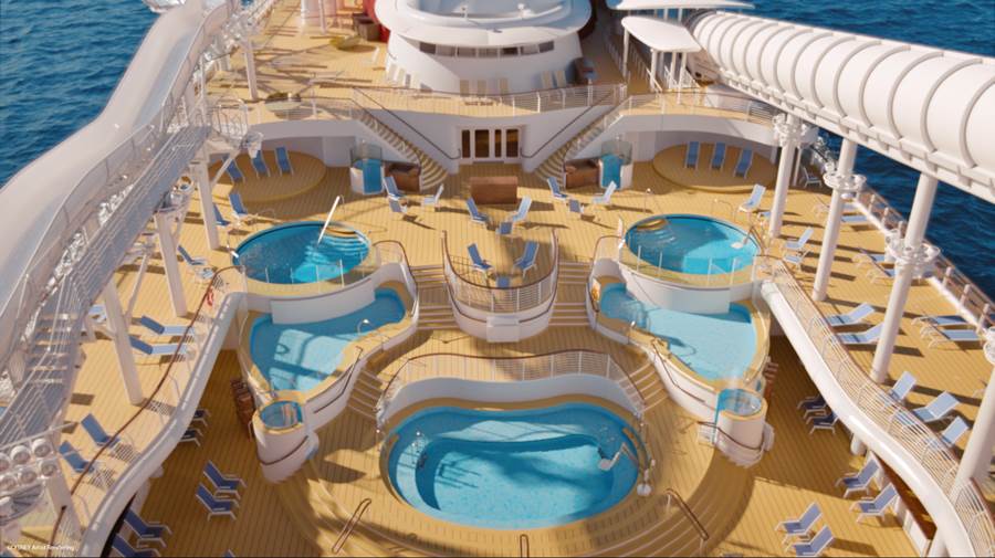 - Though the AquaMouse is being touted as the shining star of the upper decks of the ship, on the Disney Wish, families will have more pools, more deck space and more dining than ever before in an expansive district themed to Mickey and friends. Located on decks 11 and 12 midship, this area will include six pools of various sizes and depths, spaciously staggered among tiered decks and surrounded by lounge chairs — along with a fresh take on quick and casual fare with a festive character twist.