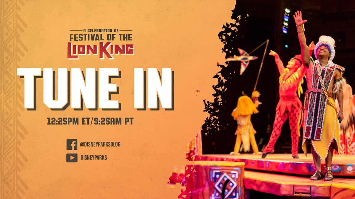 - Disney Parks Blog announced a live stream of the first official showing of “A Celebration of Festival of The Lion King” from Disney’s Animal Kingdom.