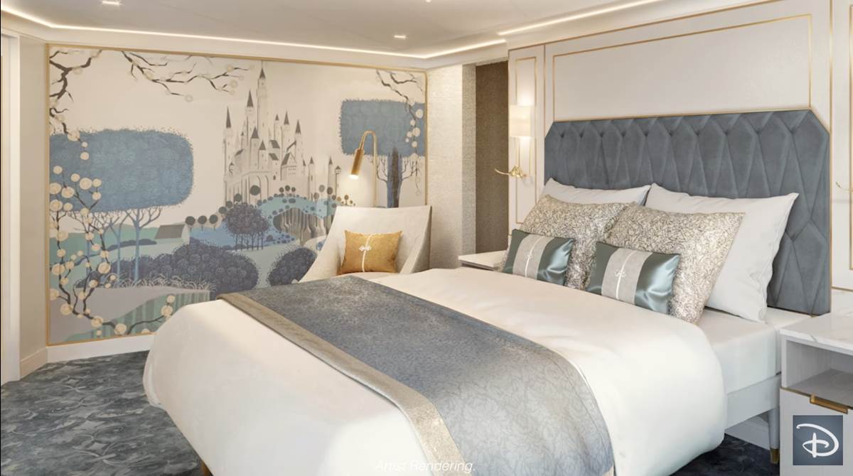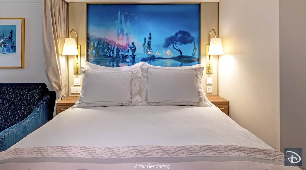 - Each stateroom will feature gold-leafed headboard murals and exclusive framed pieces commissioned for the Disney Wish.