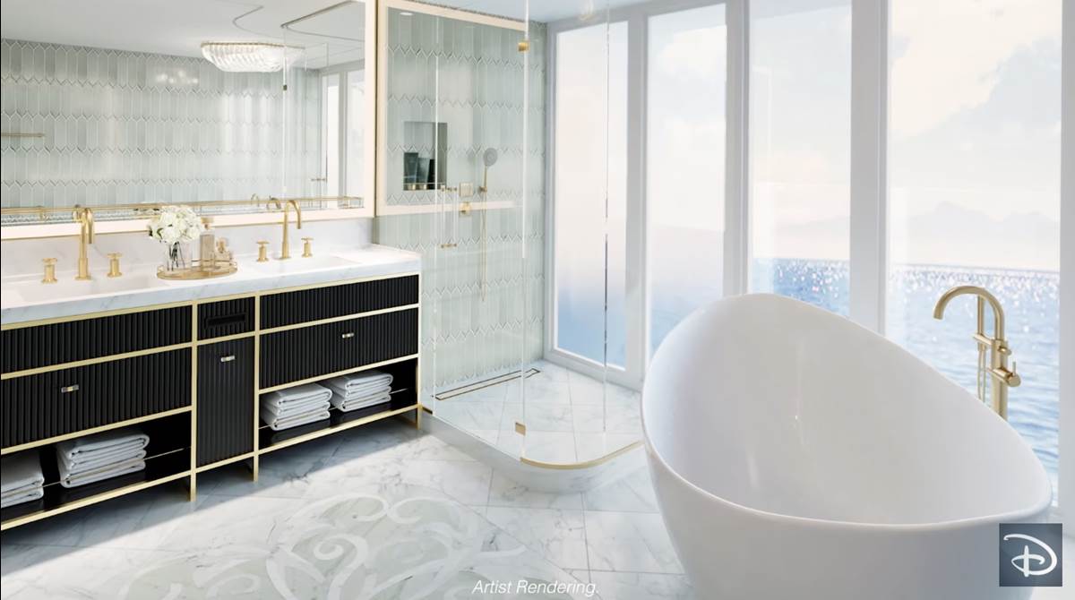 - Most of the staterooms will also offer the split-bathroom concept with a sink and shower in one room, and a sink and toilet in a separate room. All staterooms will include a bathtub.