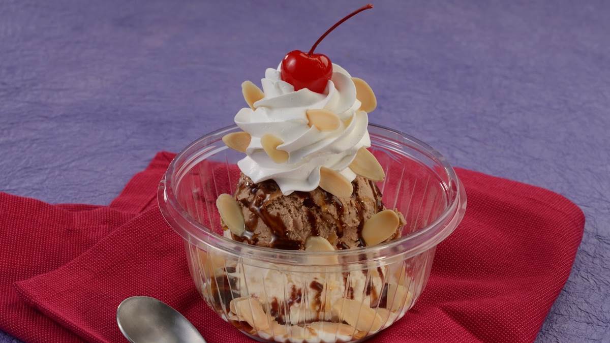 - Bay-Side Brownie a la Mode - Gooey, chewy Brownie, Hot Fudge, and Vanilla Ice Cream topped with Whipped Cream, Chocolate Sprinkles, and a Cherry