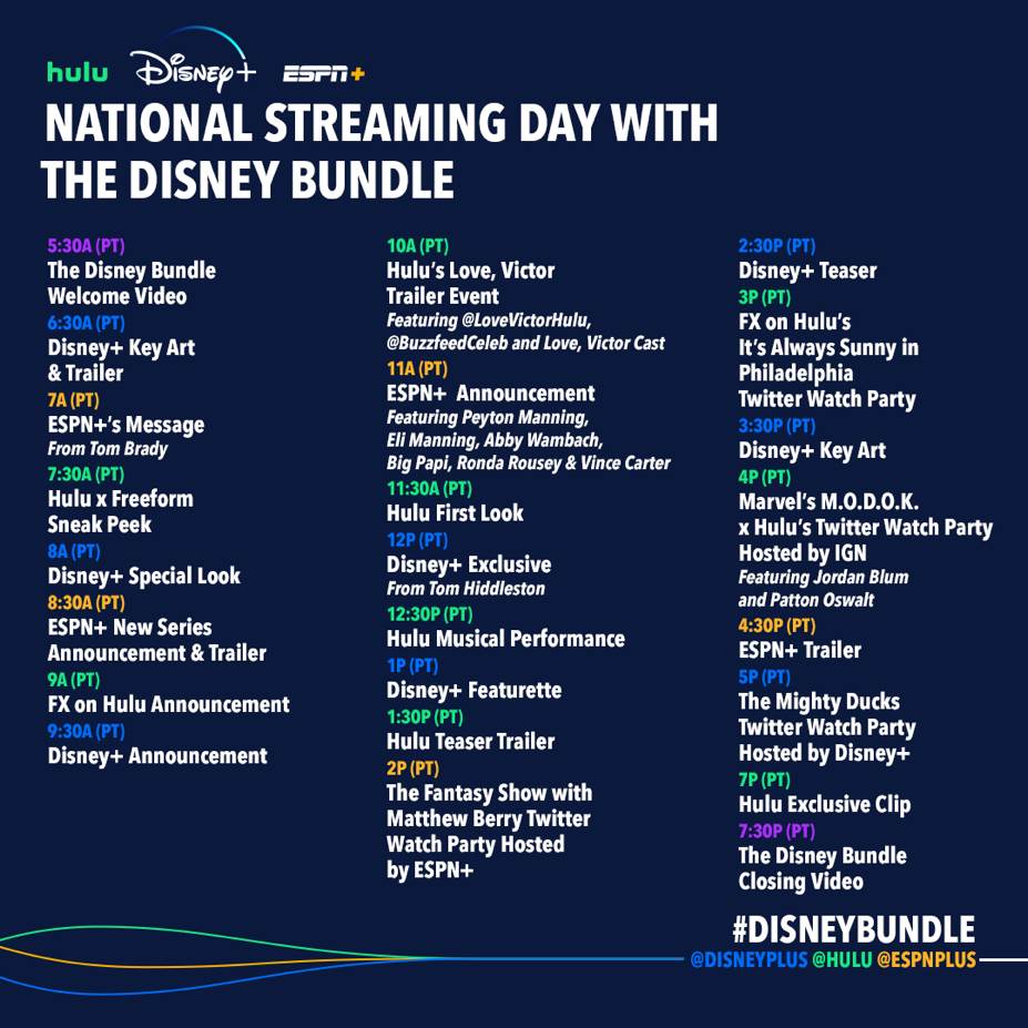 National Streaming Day with The Disney Bundle Schedule (All Times PT)