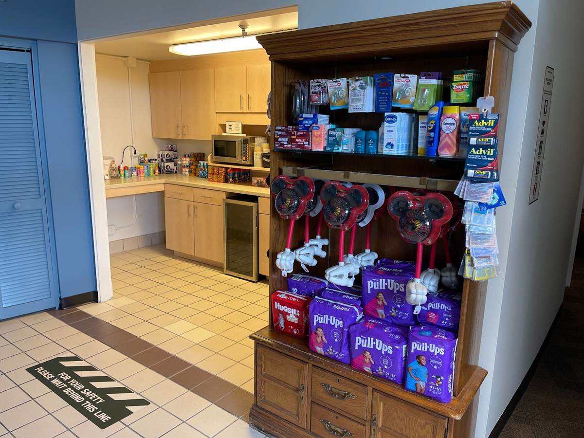 Inside, Guests can purchase essentials for their baby and access a kitchen to prepare formula.