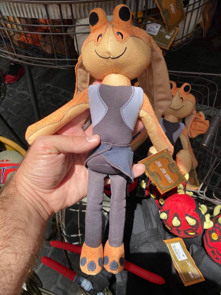 He (mistakenly) decided to pick up a Dok-Ondar plush instead of the incredibly adorable Jar Jar, but we let it pass.