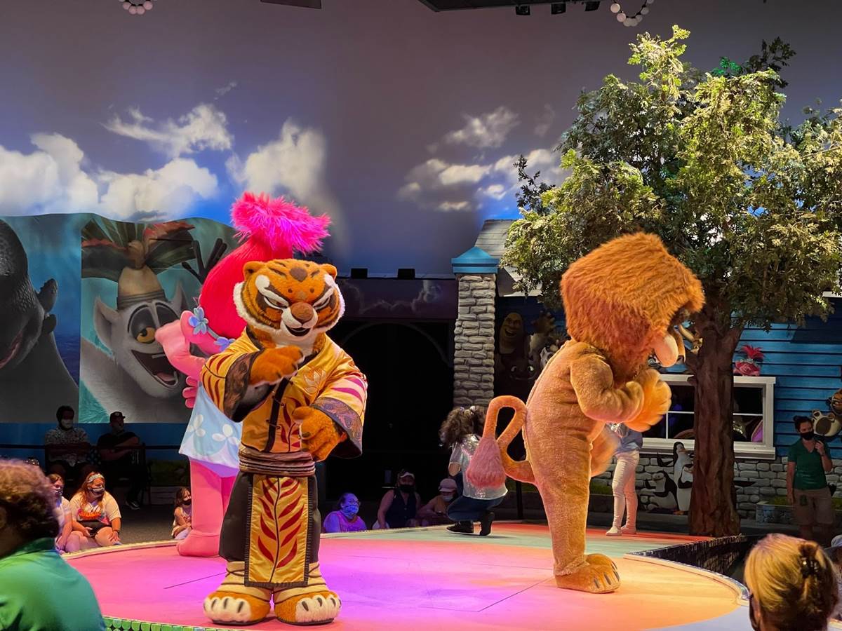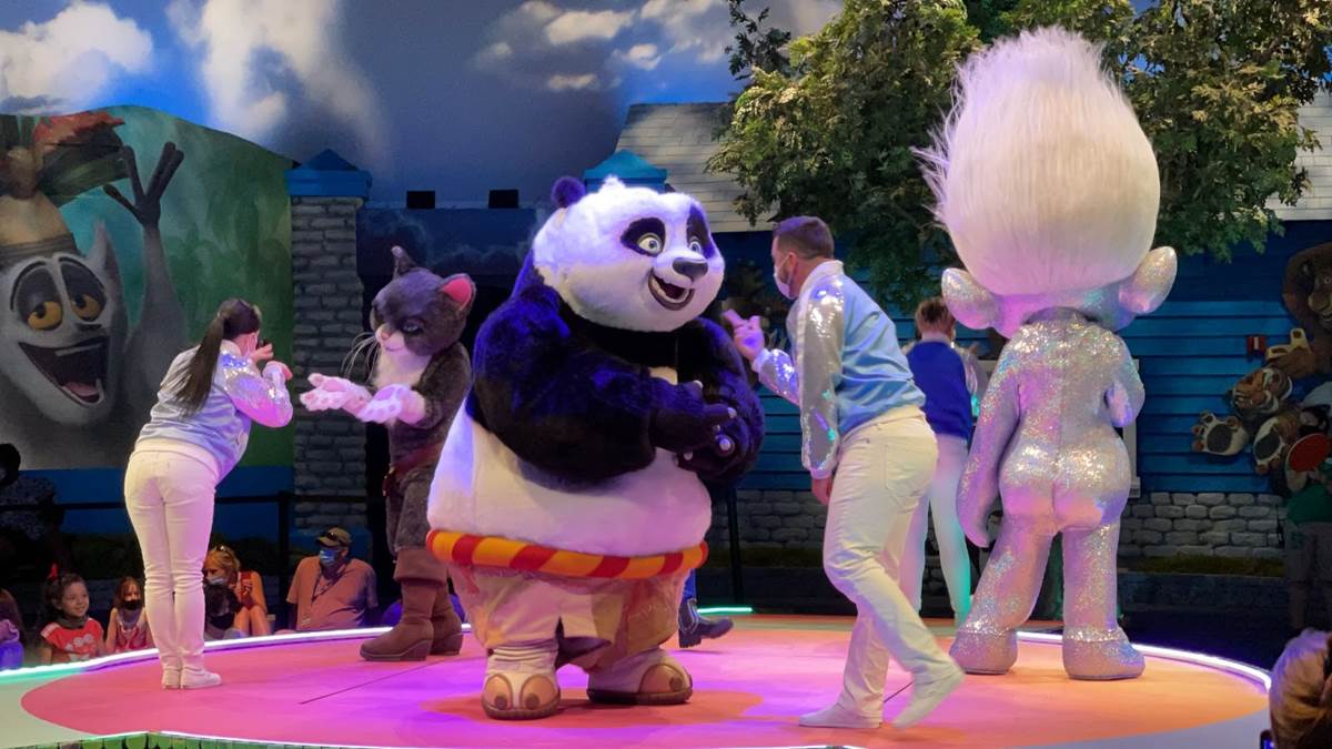 DreamWorks Destination features characters from beloved films like Madagascar, Trolls, Kung Fu Panda and Puss in Boots. The characters we got to see included: