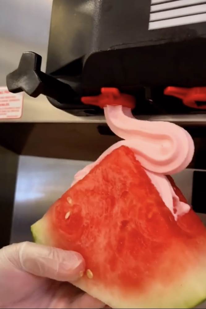 Disney Parks’ TikTok special menu item alert! Over at Disney Springs from now through September 6, 2021, you can get yourself a DOLE Whip Watermelon Slice.
