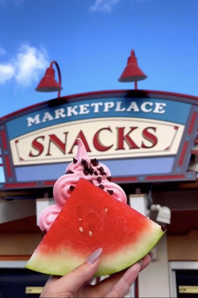 - Disney Parks’ TikTok account has revealed a new limited-time item only for TikTok followers featuring DOLE Whip Watermelon served in a watermelon slice available over at Marketplace Snacks at Disney Springs.