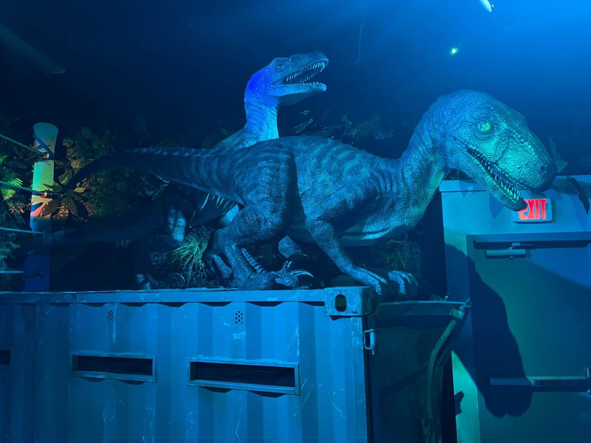 The second room brings you face to face with some raptors in the raptor paddock, while you search for more merchandise!