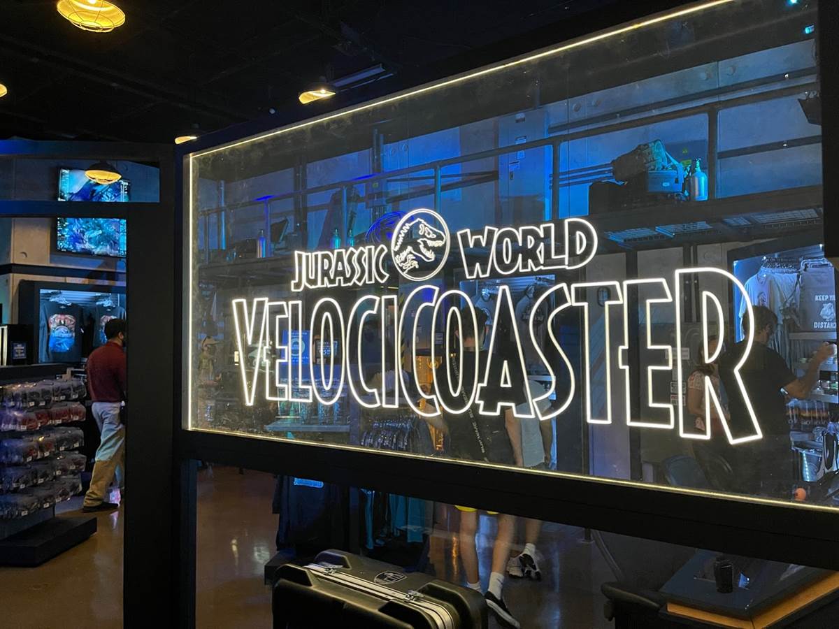 The first room is themed to the VelociCoaster control room, you’ll see nods to VelociCoaster which has its grand opening on June 10 over at Islands of Adventure, with all kinds of merchandise and themed displays.