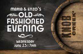 - Wednesday, June 23 at 7 p.m. Maria and Enzo’s at Walt Disney World will be hosting “Maria and Enzo’s Old Fashioned Evening” in Disney Springs, an upscale affair with the opportunity to sample the very best Knob Creek whiskey, with barrels specifically chosen for Maria and Enzo’s, and dine on delicious Italian-influenced bites.
