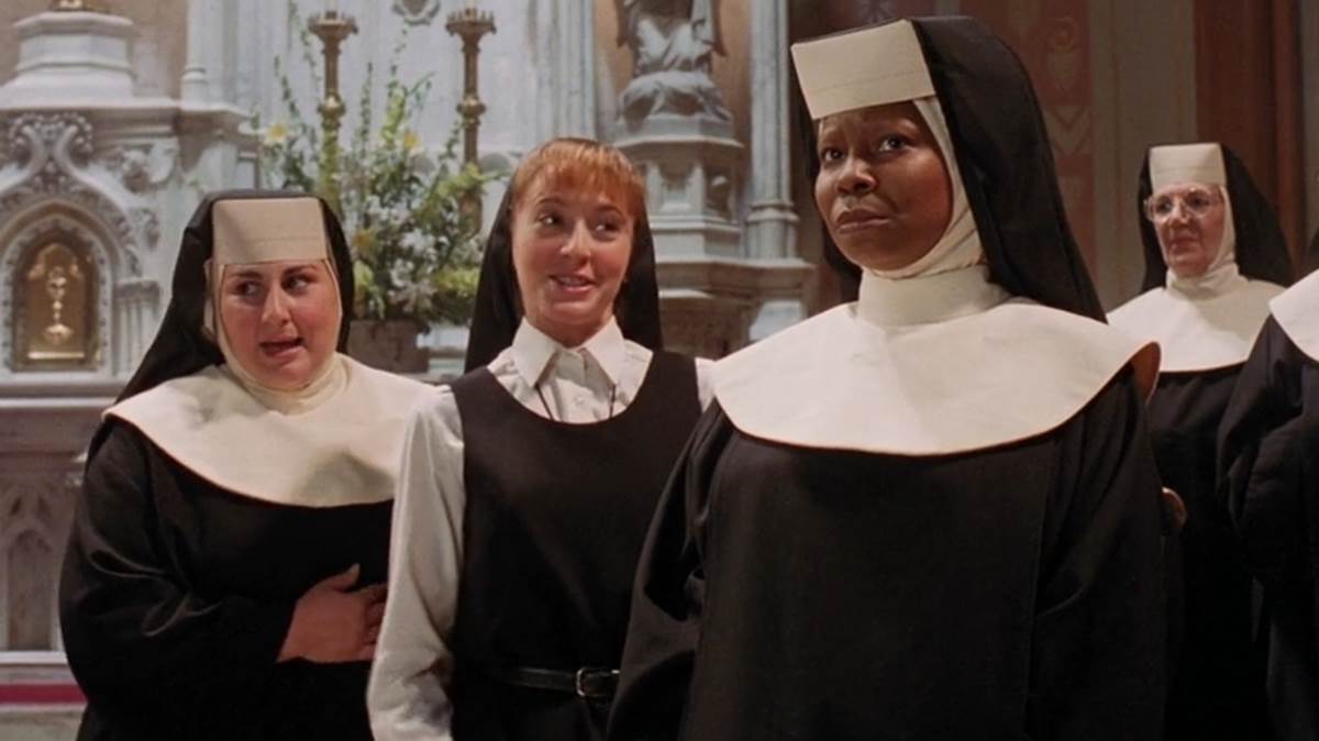- They also discuss the costumes in the movie, including how the cast had some difficulties with their range of movement, say in dancing scenes, while wearing the traditional nun robes, or in Whoopi’s case, the jeans she had hiding underneath.