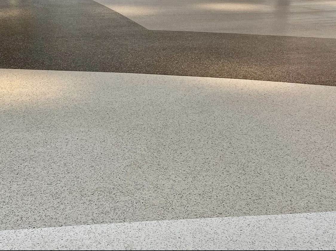 - He captioned his image set: “EPCOT is a unique park with a unique aesthetic. It’s not modern in the traditional architectural definition of that style, but it is abstract. It’s big, bold shapes, surfaces, color and details that define EPCOT. Those are the same techniques we are using in all the facets of Creations Shop, right down to the floor. Similar to the design we recently revealed for the new floor at Club Cool, we have a completely custom surface that brings color and texture to life. Our Imagineering team carefully selected binder colors and aggregates to create five unique terrazzo finishes. We’re also using golden yellow as our primary accent color throughout the space, inspired by one of the main colors of Mickey himself. This golden yellow terrazzo has a special tessellated pattern, reminiscent of Spaceship Earth. This integral pattern is created using 3D printing technology, in lieu of brass inlays used in more traditional terrazzo installations. This gives us greater precision to reflect shapes and motifs iconic to EPCOT. This terrazzo is also distinctive in that it uses a natural binder, made up of biodegradable materials, which further supports Disney’s commitment to sustainable building practices. And I’m proud to share a first-look photo of the actual floor being poured in the new space”