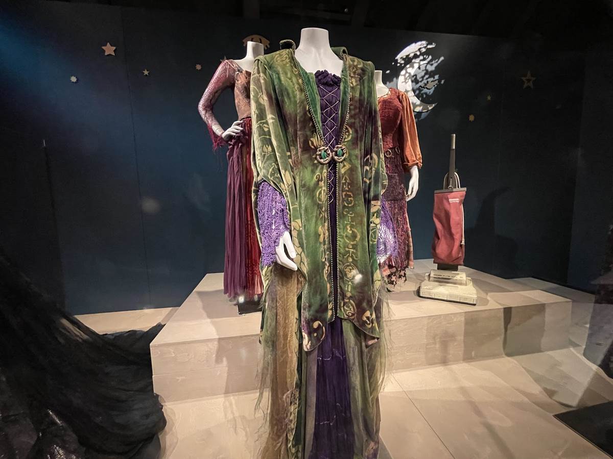 One highlight of the exhibit that is sure to attract the eyes of many a fan are the three witches’ dresses from 1993’s Hocus Pocus belonging to the Sanderson Sisters worn by Bette Midler, Kathy Najimy, and Sarah Jessica Parker, all designed by Mary Vogt. Also included in the display, the signature vacuum cleaner.