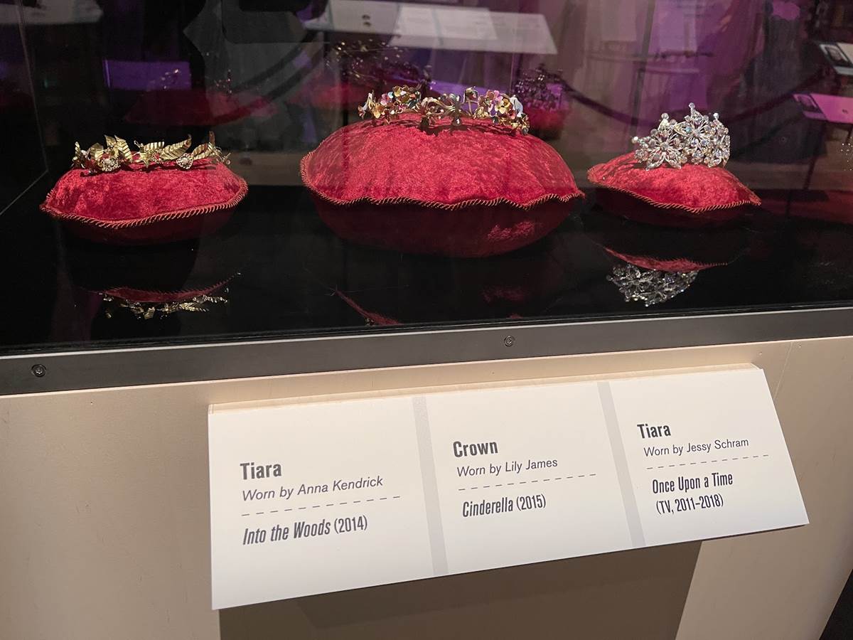 Ten Cinderella pieces include ball gowns, tiaras, slippers, and other accessories including a gown from 2015’s Cinderella by Sandy Powell made from more than 270 yards of fabric and adorned with over 10,000 crystals.