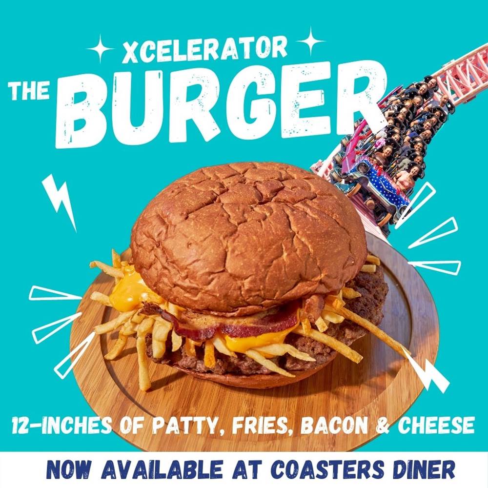 - It seems that now with Knott’s Berry Farm’s new Xcelerator Burger, the large food trend and new menu items will be the new groundbreaking attractions that park goers will be heading out to see.