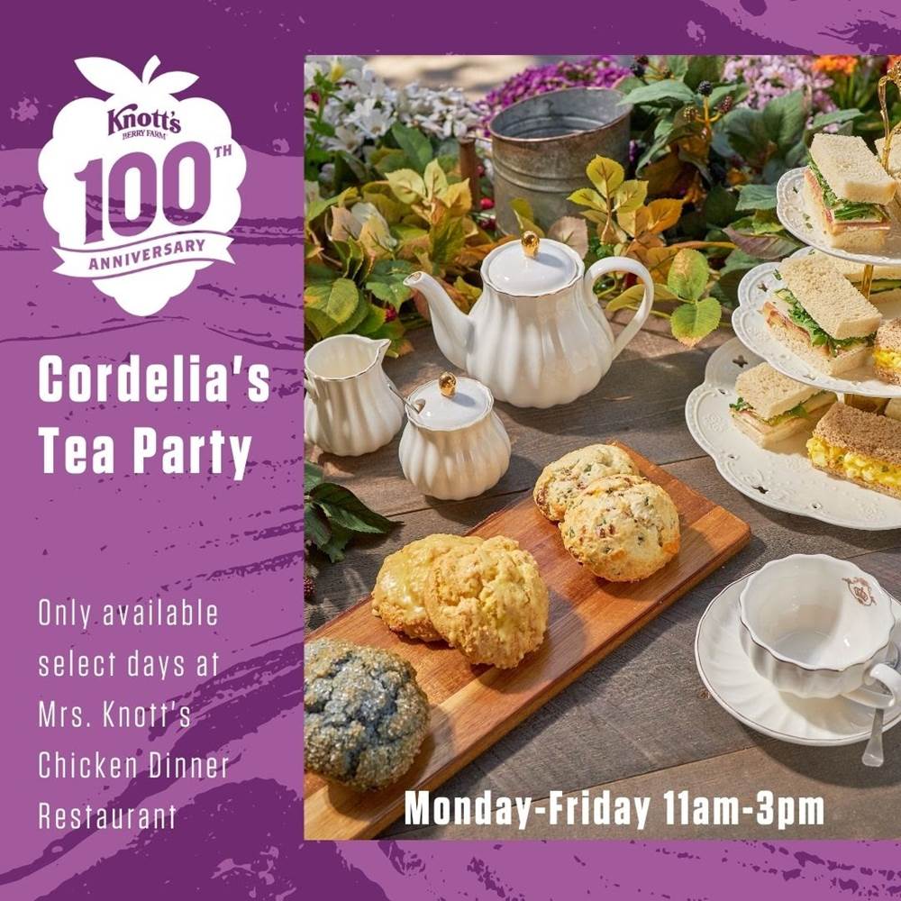 - This week, Knott’s Berry Farm took to Twitter to tell guests about Cordelia’s Tea Party at Mrs. Knott’s Chicken Dinner Restaurant.