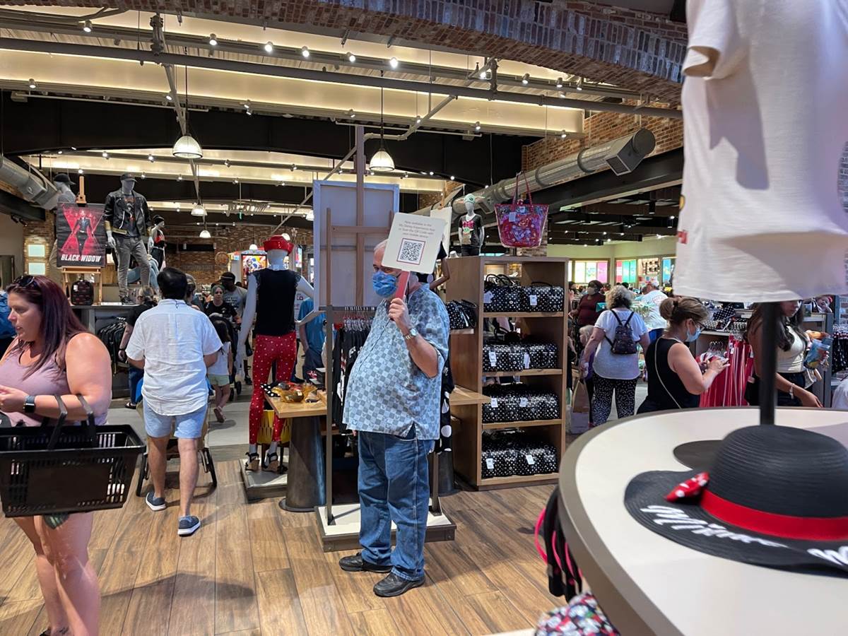 - To get started, you can scan the QR codes seen throughout the store while grabbing a clear shopping bag, or click on the plus button in the My Disney Experience app and then click on “Shop in Store - Now Testing.”