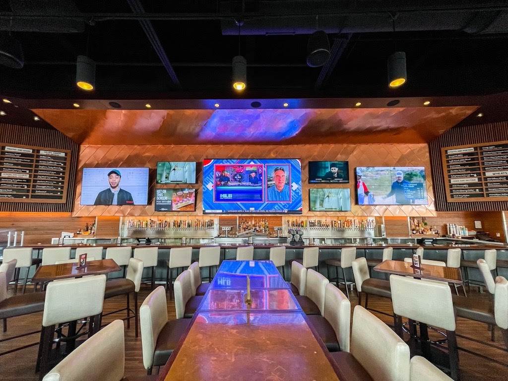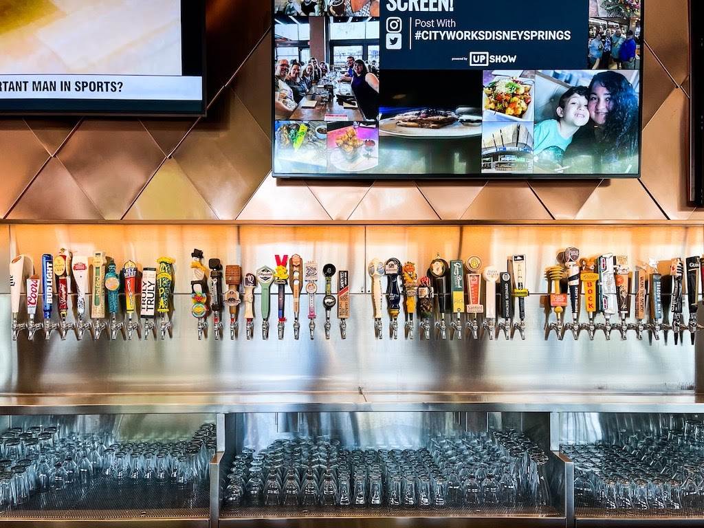 - City Works is Disney Springs’ premier sports restaurant and bar with its 17 HD TVs, including an enormous 168-inch video wall so people won’t miss a single punch.