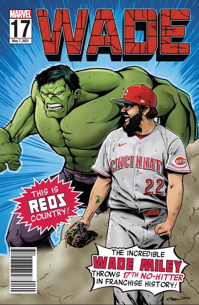 Marvel has created an exclusive Incredible Hulk poster in celebration of Cincinnati Reds’ pitcher Wade Miley’s no-hitter in May.