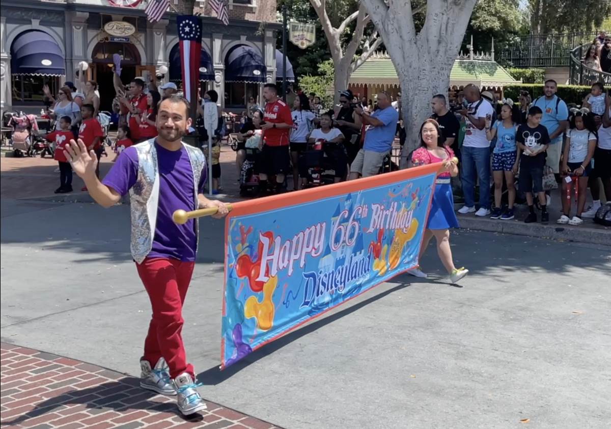 - July 17 is Disneyland’s 66th Birthday, and to celebrate, a special cavalcade paraded down Main Street, U.S.A., featuring the Disneyland Band and several Disney characters.