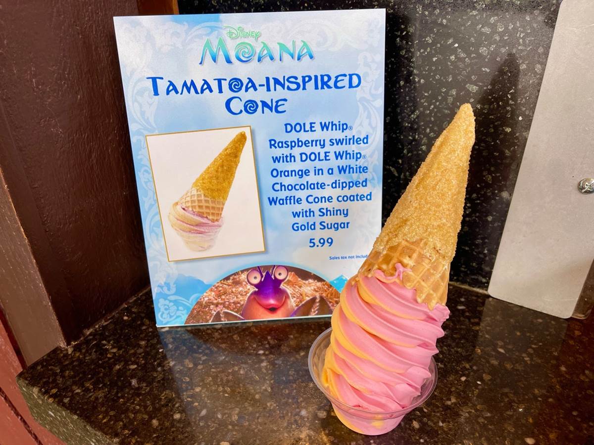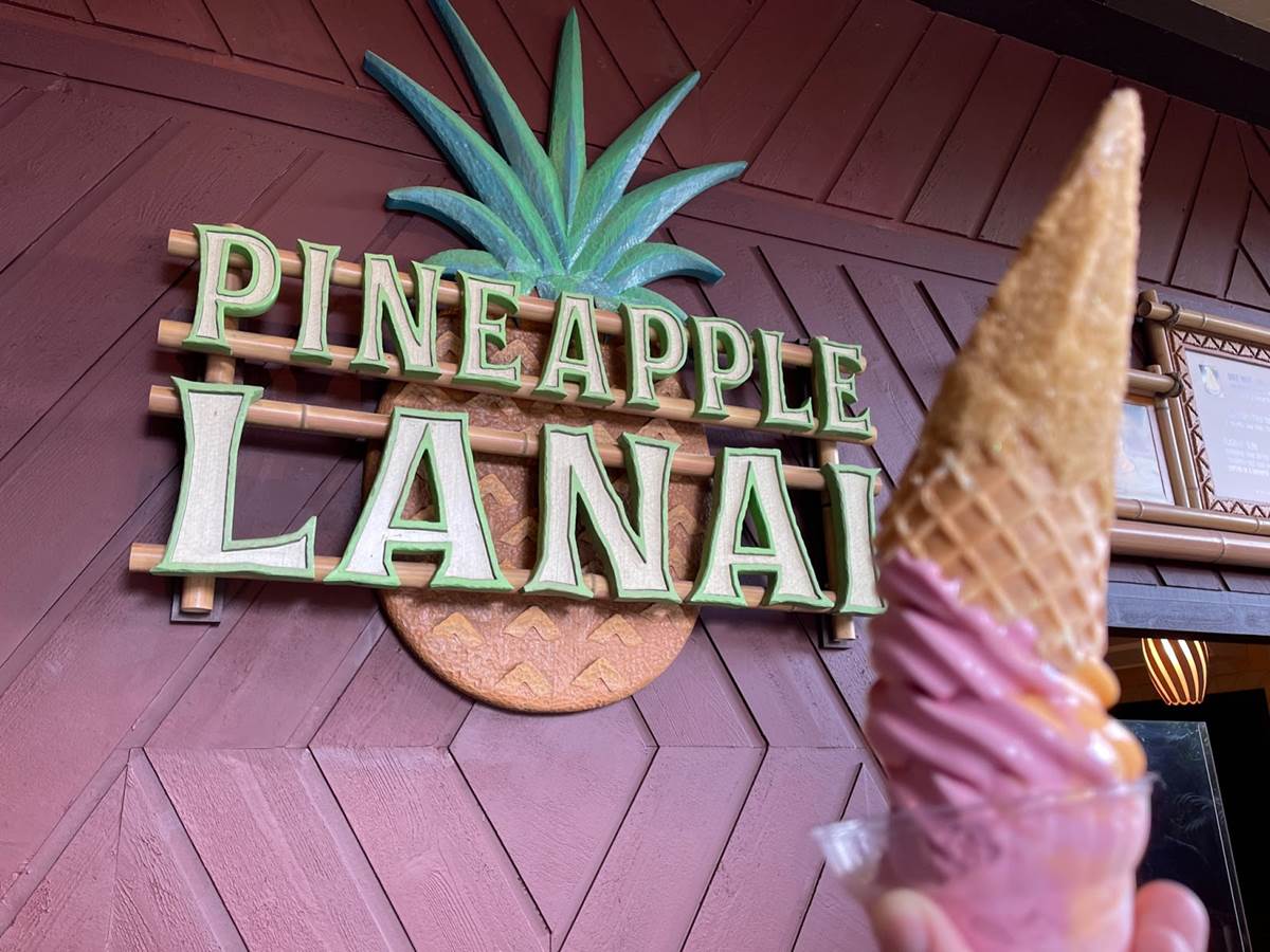 Outside at Pineapple Lanai, Guests can check out the limited-time DOLE Whip featuring raspberry swirled with orange in a white chocolate-dipped waffle cone coated with gold sugar. The special DOLE Whip is available starting today through Wednesday, July 21.