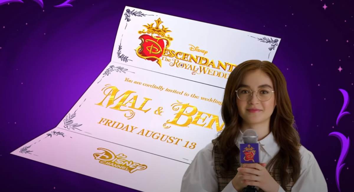 Anna Cathcart is giving fans of Descendants the Royal Wedding Report on Mal and Ben's wedding, letting us in on the details of the invitations, flowers, food and seating chart!