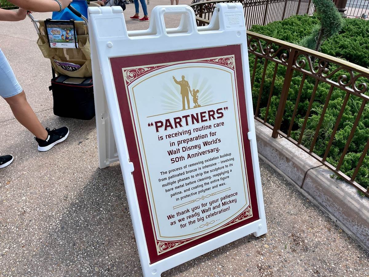- Last week, signs could be found around the Partners statue as work began on refurbishing the iconic sculpture which can be found near Cinderella Castle at the Walt Disney World Resort.