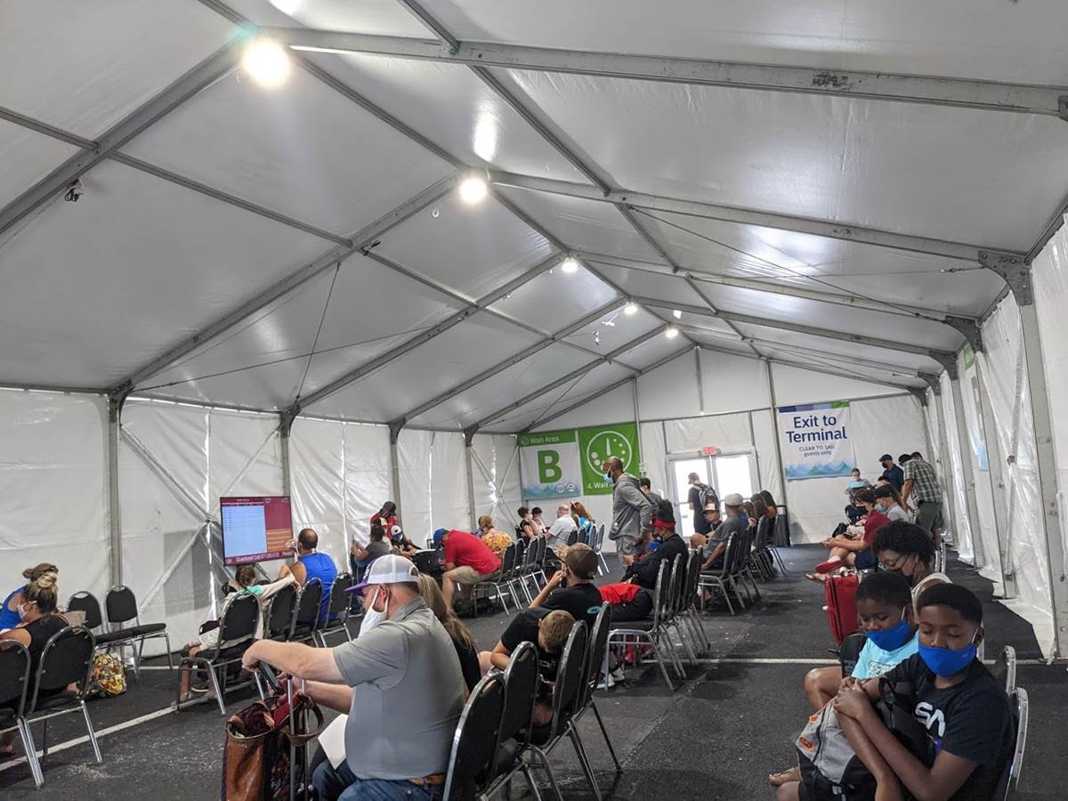 After unloading luggage at the curb, instead of heading into the terminal, guests are now directed to health screening locations. Guest records are then searched to see if you’re vaccinated or if you need to be tested. Guests whose records indicate that they are fully vaccinated will not be subject to testing. However, if testing is required, guests are given a kit and directed to another location where you are walked through the process. (Note: If you arrive in your own vehicle, you'll be directed to the parking structure after dropping off your luggage where you'll take the test and await the results in your car).