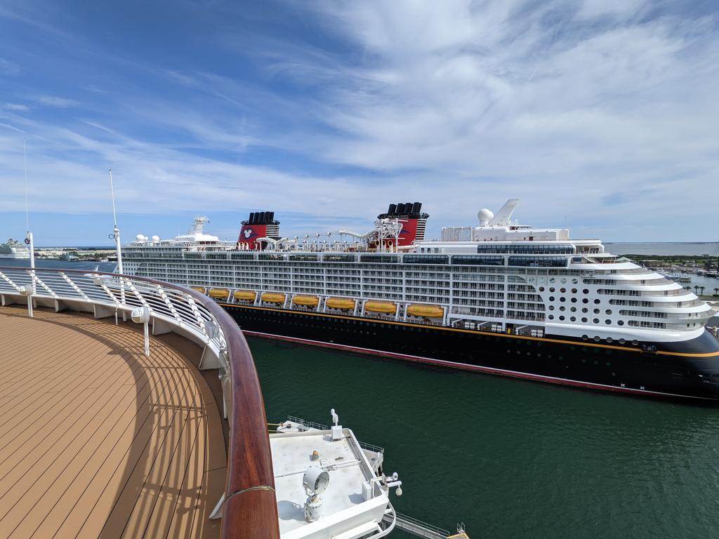 When arriving at the Disney Cruise Line terminal to board the Disney Dream, we noticed (it’s hard not to!) sister ship, the Disney Fantasy in port as well. Guests are now given a specific time in which to arrive at the port. This time is enforced.