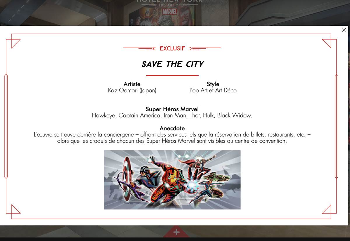 - The hotel also features 350 pieces of artwork on display from both comics and movies, created by more than 110 artists, including 50 exclusive pieces.
