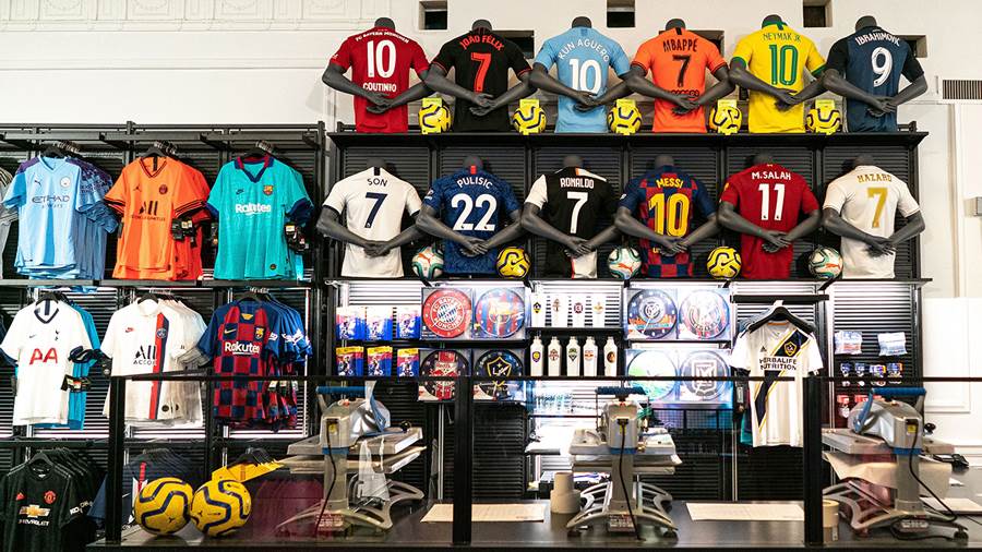 - This will be the ultimate soccer destination, where players and fans alike can choose from a vast selection of official club and national team jerseys from around the world, sports apparel, cleats, balls and accessories for men, women and children. You can even have jerseys customized with a name and number for an additional fee.