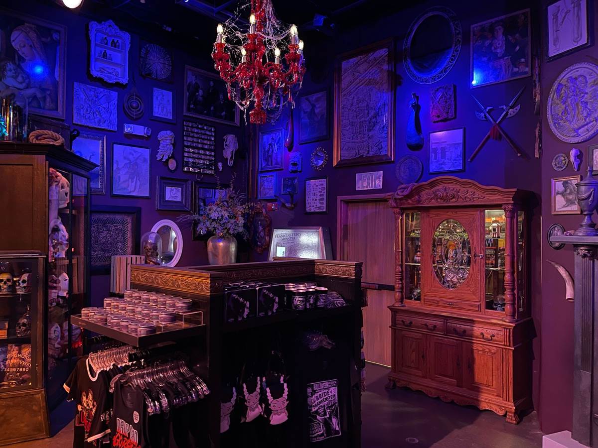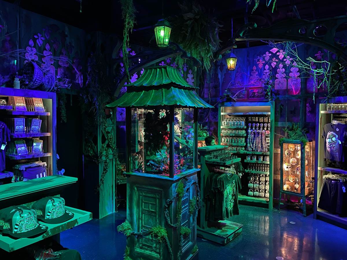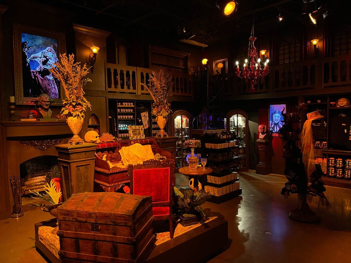 As it has in the past, the Tribute Store offers guests an immersive shopping experience, with incredible theming and a wide variety of merchandise. The store is made up of several different rooms, each with a slightly different theme, though they all come together to create a creepy haunted house (without the actual scares).