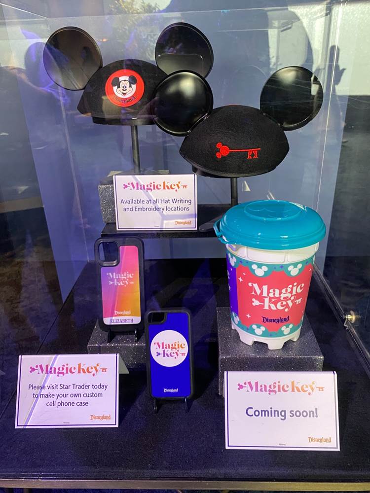 Magic Key Holder merchandise has a display inside the experience, showcasing the personalized phone cases and Mickey ears available, with a sneak peek look at the popcorn bucket coming soon. Those are just some of the special offers available with many more to check out here.