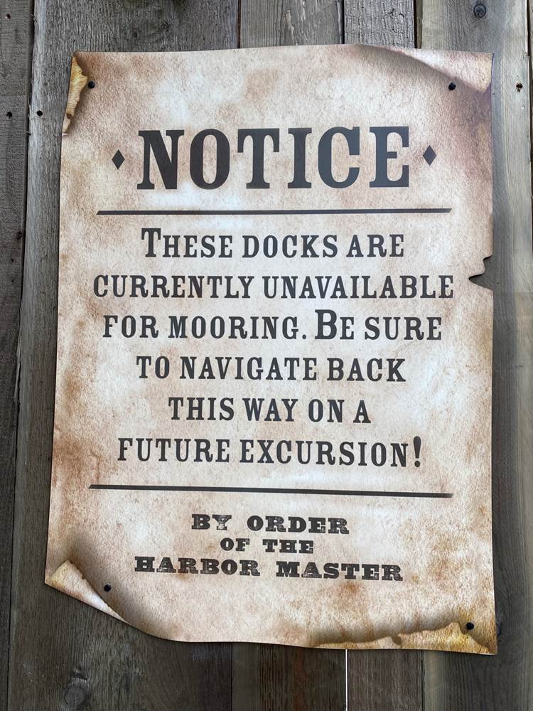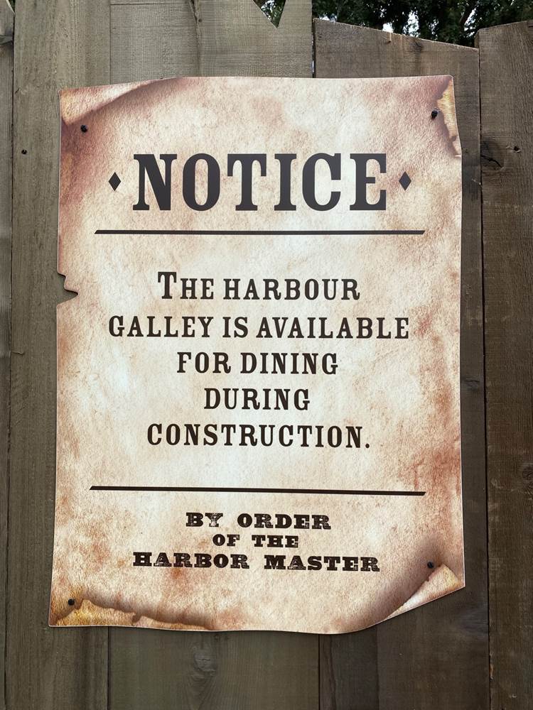 Signs are up around the construction area stating that the Harbour Galley is still open for dining during the construction.