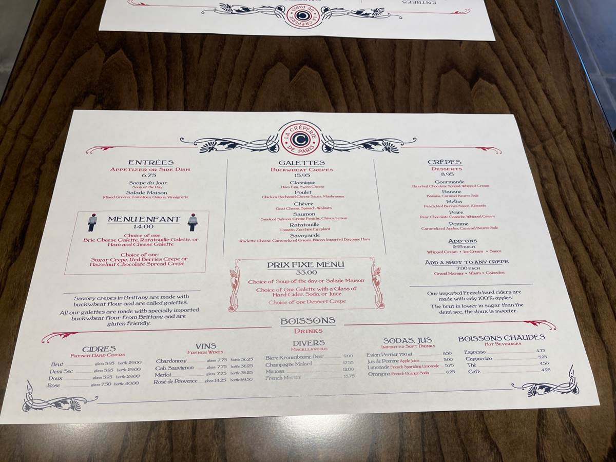 La Crêperie de Paris Menu