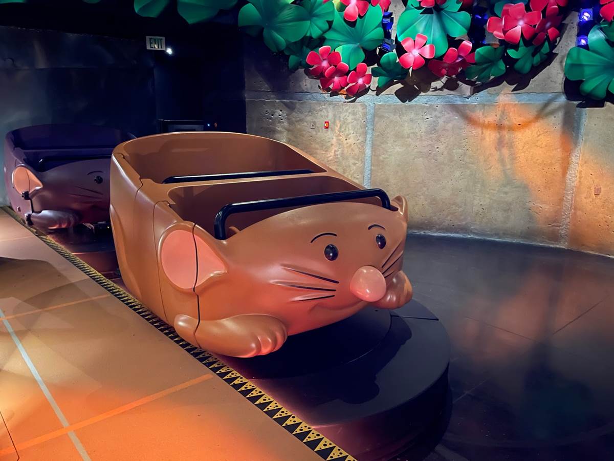 - You’ll then board rat-shaped vehicles and put on 3D glasses to begin the adventure.