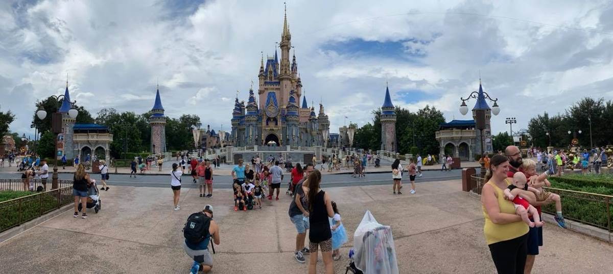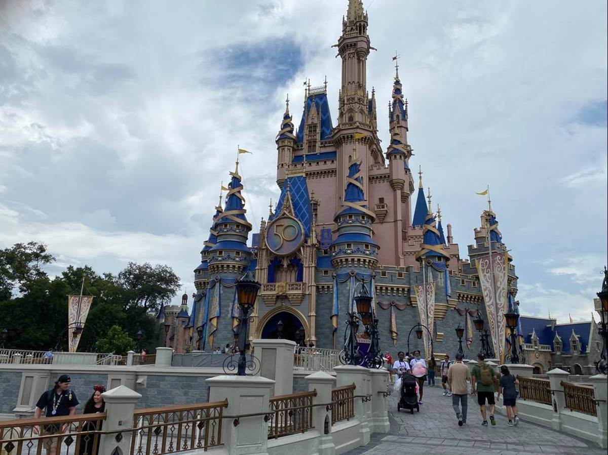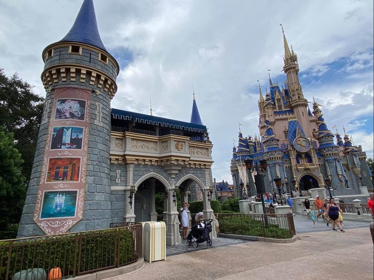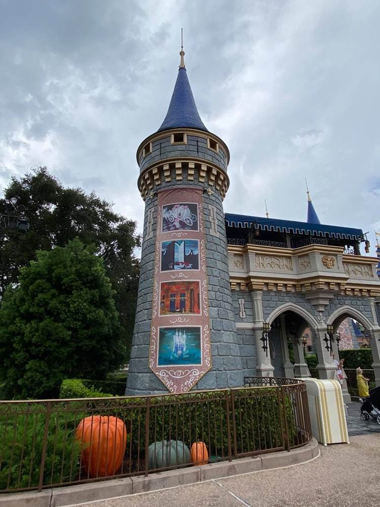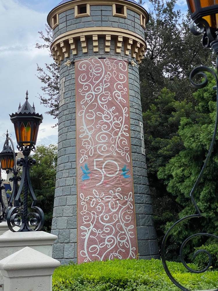 - Along with the art, guests will notice complementary banners and tapestries that don’t feature any Cinderella art, but carry the look and style of the surrounding banners and tapestries and weave in the new “50” for the World’s Most Magical Celebration, honoring 50 years of Walt Disney World. These banners also include two little bluebirds, harkening back to the dressmaking sequence in the film.