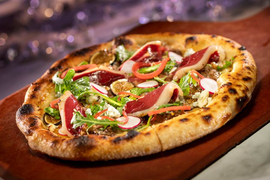 - The House-Made Artisanal-Style Duck á la Orange Pizza has a fun backstory. Long Island Duckling with Orange Sauce was on the original Top of the World menu, and with artisanal flatbreads and pizzas from the on-stage wood-fired grills being a guest favorite, it made perfect sense to marry the two! Enter this delicious pizza with duck prosciutto and confit, orange-black mission fig jam, pickled shallots, aged blue cheese, and arugula – an homage to the classic from Top of the World and a California Grill staple.