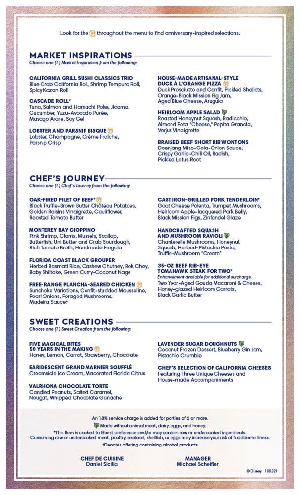 WDW 50: California Grill Celebrates 50th Anniversary of Walt Disney World With Special Menu