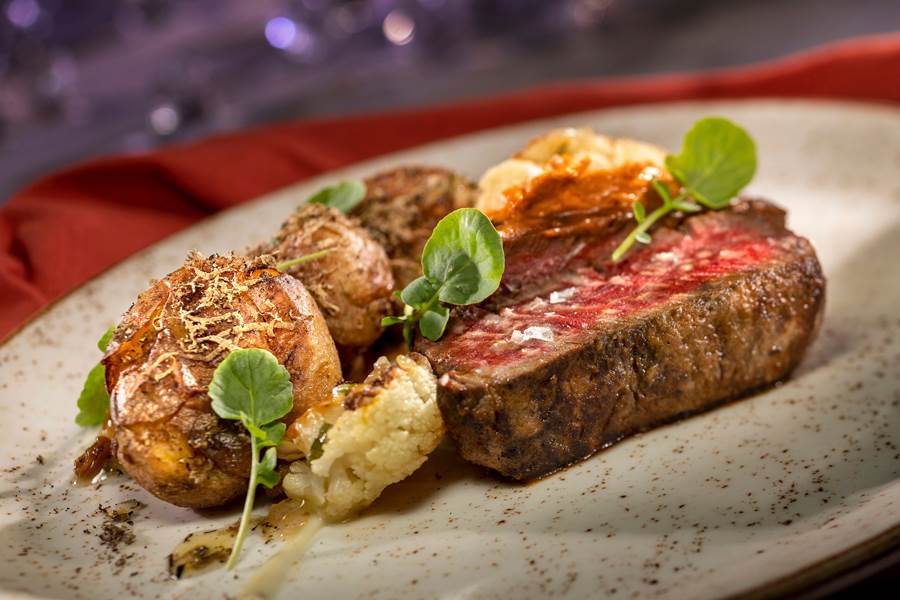 - The Oak-Fired Filet of Beef with Black Truffle-Brown Butter Château Potatoes, Golden Raisins Vinaigrette, Cauliflower, and Black Garlic Butter has layers of incredible flavors. The great filet is sure to be overshadowed by these Château Potatoes, slowly cooked in brown butter and topped with freshly shaved black winter truffles.