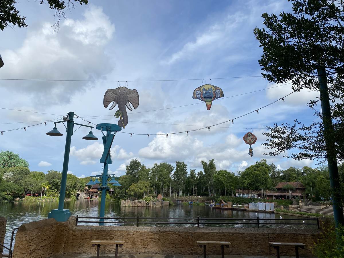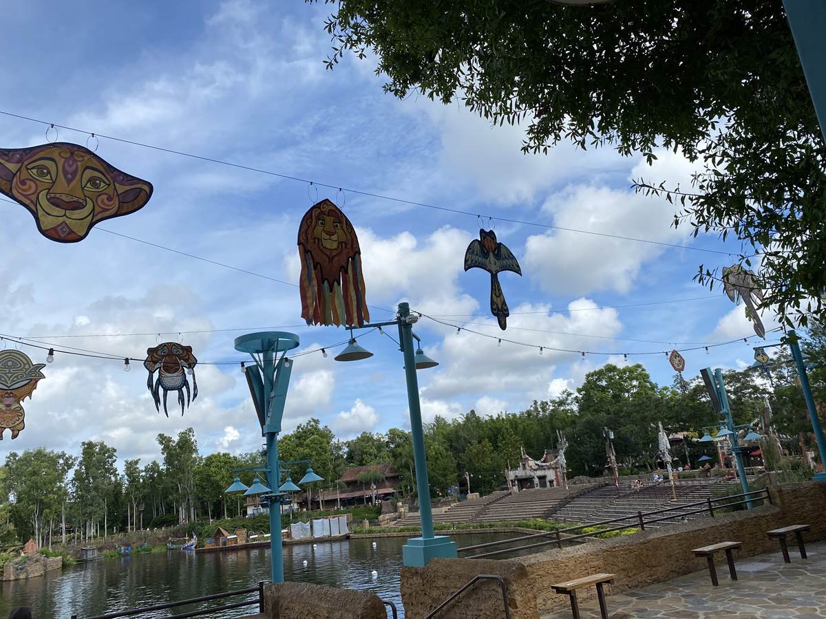 - New kites and banners have appeared, peppered throughout the Discovery River Theater and featuring recognizable characters from Disney classics hanging above the seating area for the new show.