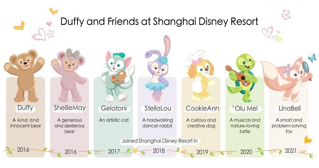 - While Duffy and his friends have happily found a home at the park, LinaBell is the first character to make their global debut at Shanghai Disney Resort.