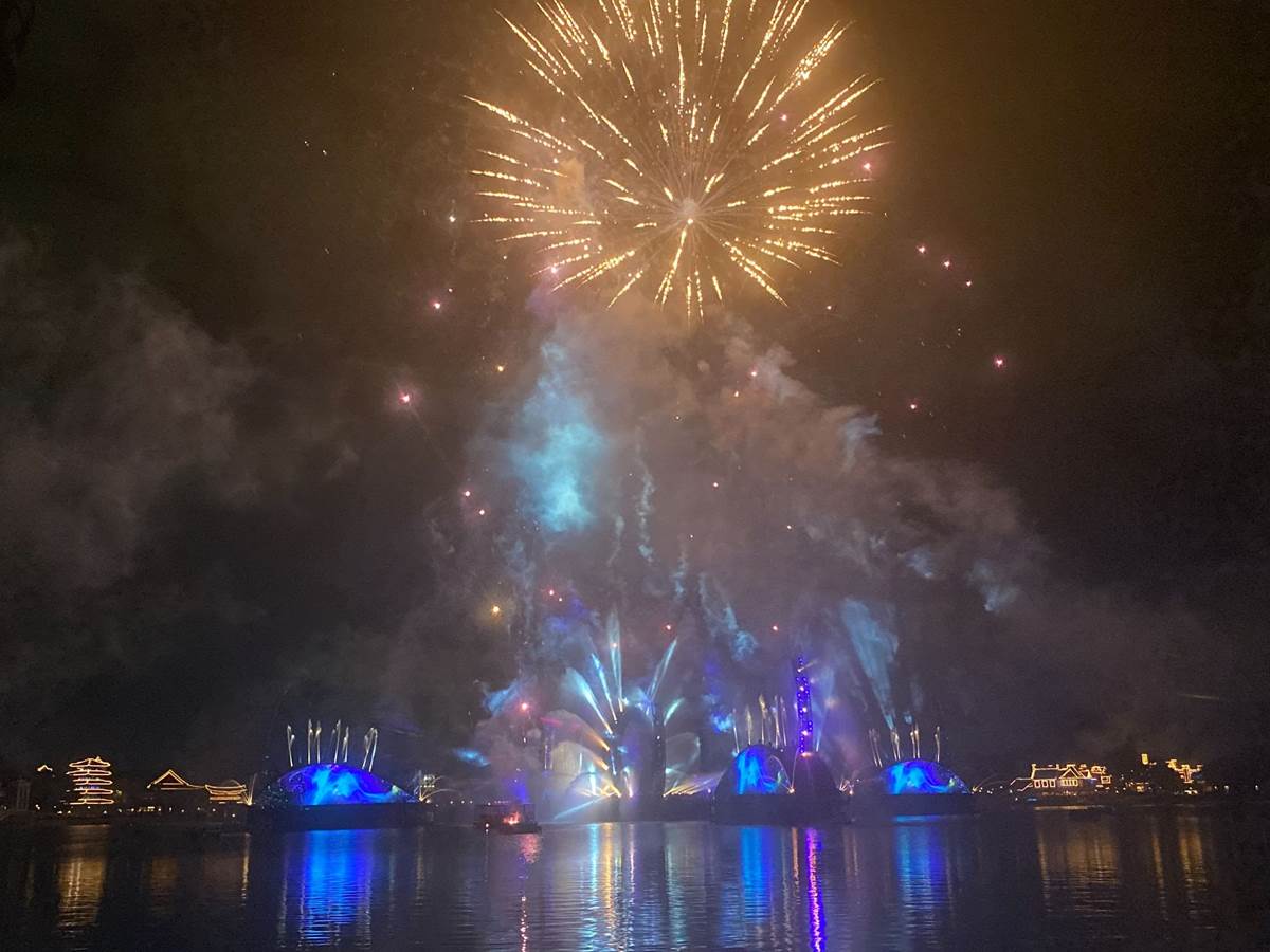 Using memorable Disney songs, Harmonious celebrates the musical sounds of the world through Disney imagery with video elements, water fountains, lasers and fireworks. 15 songs are included in 13 languages performed by 240 artists from around the world. The show begins with “How Far I’ll Go” and “Go the Distance” to begin your journey around the world, which includes Africa (The Lion King), India (The Jungle Book), the Arab World (Aladdin), China (Mulan), France (Beauty and the Beast/The Hunchback of Notre Dame) Scotland (Brave), Mexico (Coco/Saludos Amigos), and the United States of America (The Princess and the Frog). The grand finale that ties the whole show together is set to the song “Someday” from the end credit song from The Hunchback of Notre Dame.
