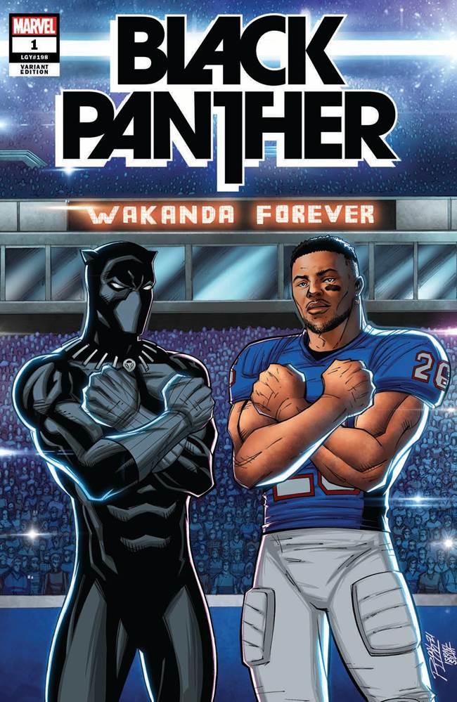 - Saquon Barkley: “I’ve been a Marvel fan my entire life, so appearing on a Marvel comic cover side-by-side with T’Challa, the Black Panther is absolutely a dream come true. I’m excited for fans to see us together – Wakanda Forever!”