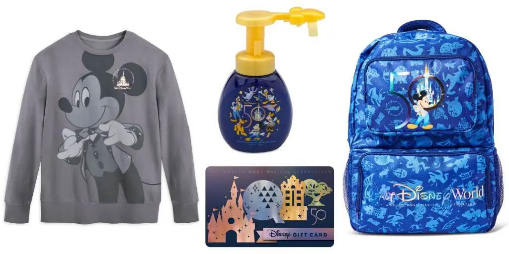 - A selection of 50th anniversary merchandise, including shirts, crocs, a backpack and the infamous Mickey-shaped soap dispenser, are available to purchase online at shopDisney.